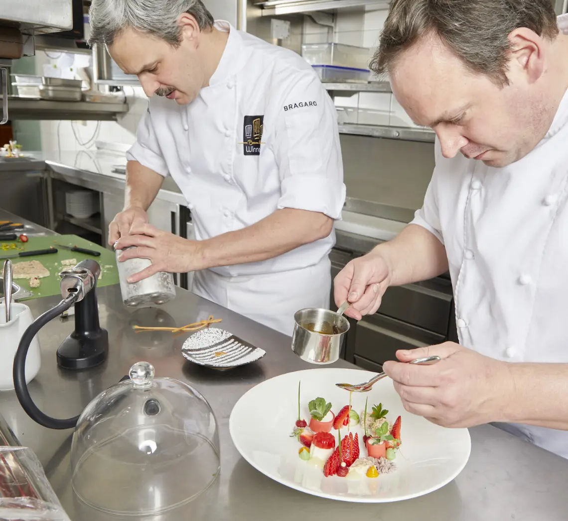 Geben Sie Claus und Rainer Weitbrecht die gleichen Zutaten, dann entstehen zwei verschiedene Rezepte. Das macht die beiden als Team so stark und ihre Küche so überraschend – in beiden Restaurants. Wenn’s um Hingabe, Qualitätsverständnis und die Verbundenheit mit regionalen Produzenten geht, dann reicht bei Claus und Rainer der Familienname als Garantie: Weitbrecht.